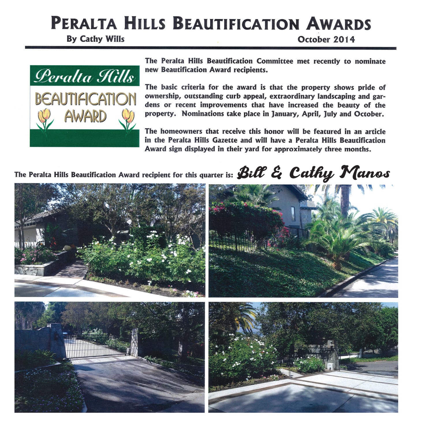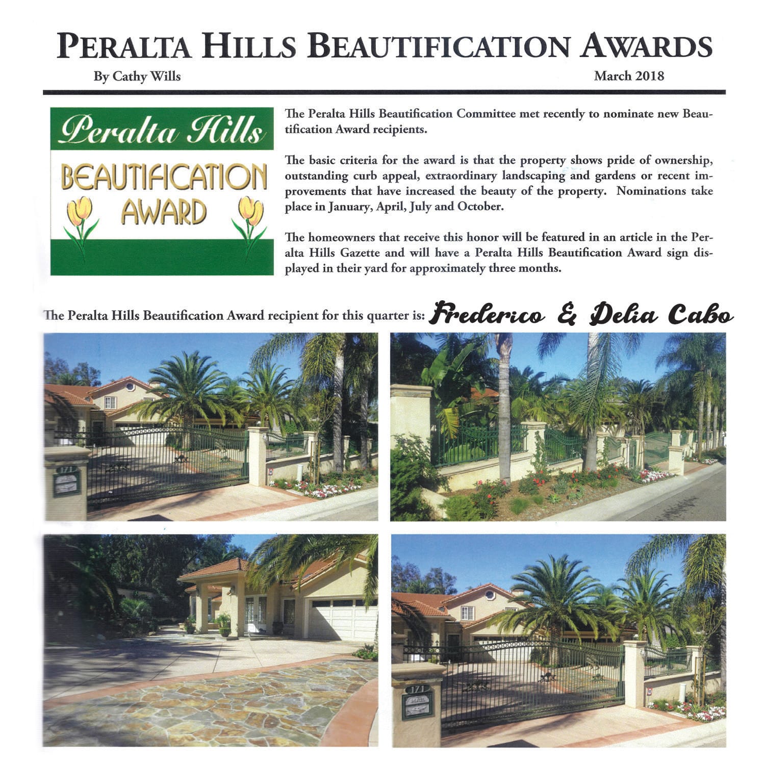 We recognize and celebrate the hard work and dedication that goes into crafting a beautiful landscape. As a community, we deeply appreciate the pride you take in your homes, and the outstanding aesthetic value it adds to our magnificent neighborhood, Peralta Hills.