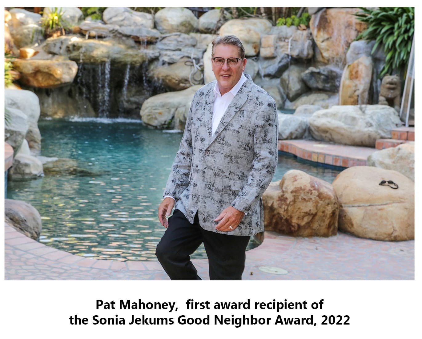We are delighted to share that the inaugural award recipient was Patrick Mahoney. His exemplary contributions have set a high standard for neighborly kindness and leadership, inspiring us all to contribute to the continued vibrancy and unity of Peralta Hills.